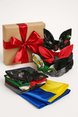 Подарунковий комплект пов’язок «Солоха» до зимових свят для тих, хто любить стильні акценти на кухні та в повсякденному житті. У наборі п’ять жіночих пов’язок у різних поєднаннях кольорів: чорна з червоною, чорна із сірою, сіра з кораловою, а також моделі із зеленим принтом прянощів та чорним оздобленням овочами. Такий набір стане яскравим та практичним подарунком для шефів, кондитерок, барист і всіх, хто хоче виглядати красиво під час роботи. Склад комплекту: